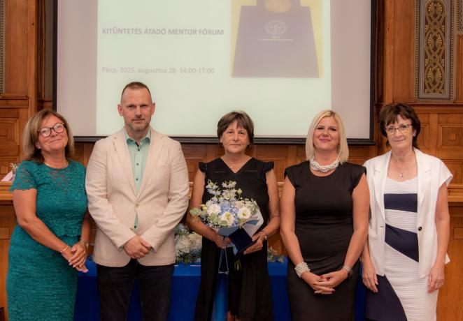 A díjazott pedagógusok a PTE pedagógusjelölt hallgatóinak mentorálásában, gyakorlataik vezetésében végeznek tartósan kiemelkedő színvonalú, példa értékű munkát. A pedagógusutánpótlás kinevelésében végzett odaadó tevékenységük elismeréseként a Mentor Fórum ünnepi keretei között emlékplakettet, oklevelet vehettek át és pénzjutalomban részesültek.