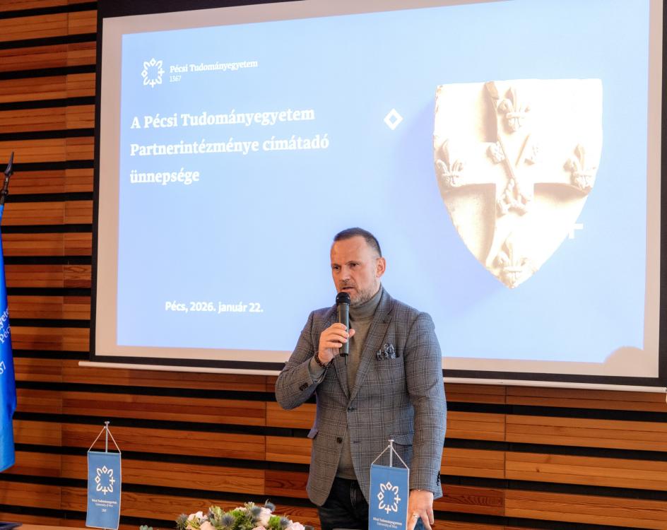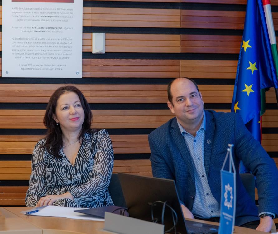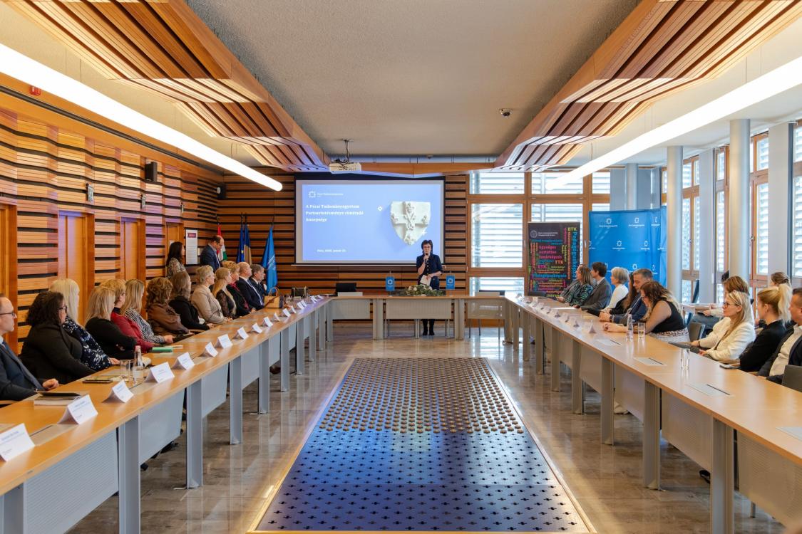 Prof. Dr. Fedeles Tamás, a PTE oktatási rektorhelyettese és Dr. Gerner Zsuzsanna, a PTE Pedagógusképző Központjának főigazgatója köszöntötte az új partnerintézményeket 2026. január 22-én a Rektori Kabinet Szenátusi termében. Az új partnerintézményekkel együtt már 128 köznevelési, szakképző és kisgyermeknevelő intézmény alkotja a PTE pedagógusképzés partnerintézményi hálózatát, fogadja a hallgatókat, segíti a pedagógusjelöltek felkészítését.