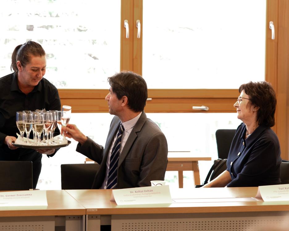 A PTE Partnerintézménye címmel járó táblák átadása után Turi Katalin, a Pécsi Tudományegyetem Gyakorló Általános Iskola, Gimnázium és Óvoda főigazgatója és Bucsányiné Gréczy Gabriella, a PTE Illyés Gyula Gyakorló Általános Iskola, Alapfokú Művészeti Iskola és Gyakorlóóvoda főigazgatója köszöntötte az új partnerintézmények vezetőit, felajánlva a szakmai együttműködését, segítségnyújtását az új partnerek részére.